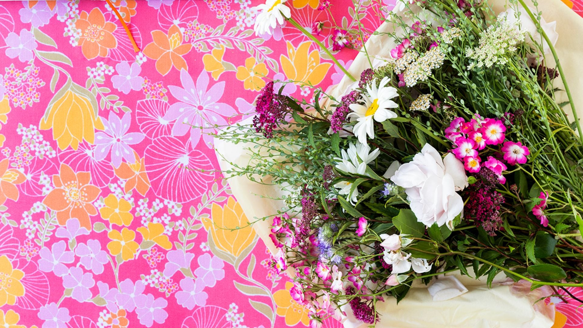 Smilende Suzy er et unikt design, inspireret af loppefund fra1970'erne. Dugen har en smuk bort af lysere blomster hele vejen rundt, som afrunder looket.