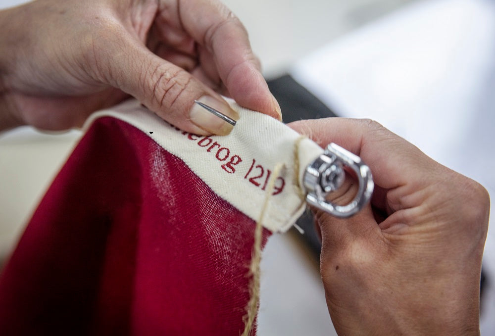 Som traditionsrig dansk flagfabrik har Langkilde & Søn produceret Dannebrog i høj kvalitet siden 1938, med respekt for håndværk, historie og danske flagtraditioner. Vores Dannebrog sys i original, slidstærk flagdug med ekstra stærk sytråd. Resultatet er et holdbart dansk flag, der bevarer både form og farve, selv i det danske vejr og klima.