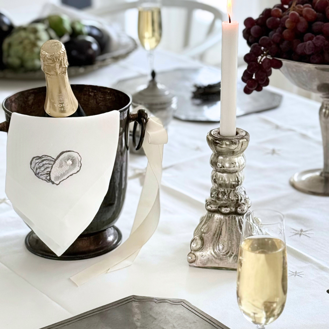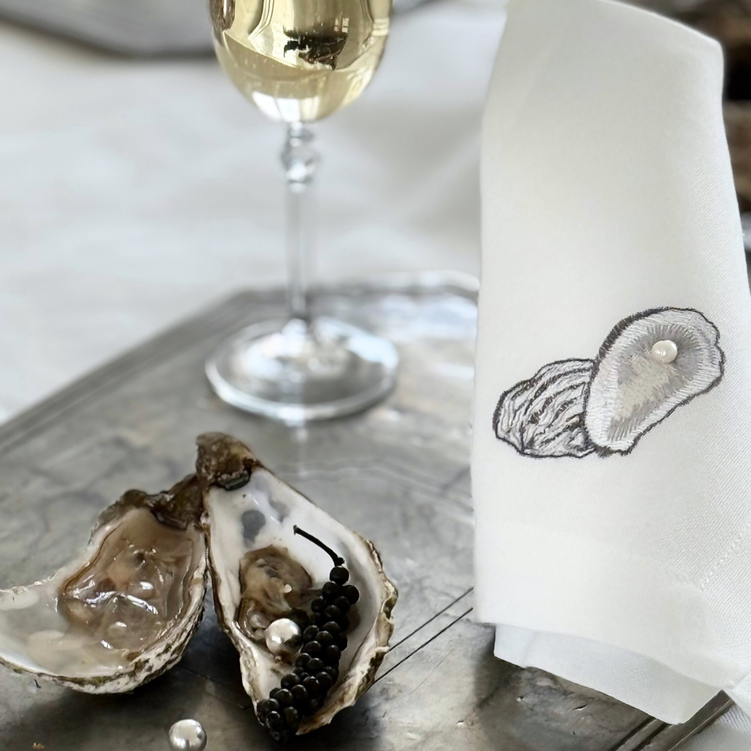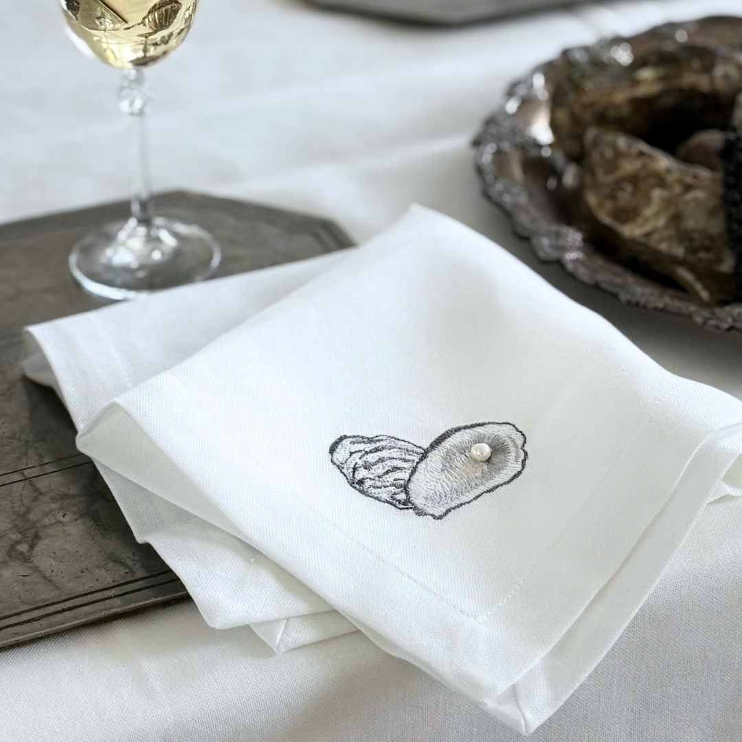 Materiale: 175g/m2 original flagdug med broderet østers i flere farver med påsyet perle